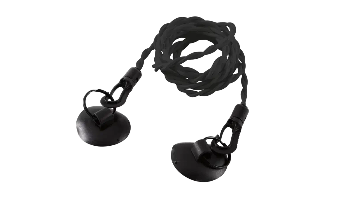 - Carbines and suction cups for easy setup on objects as trees, poles and car doors